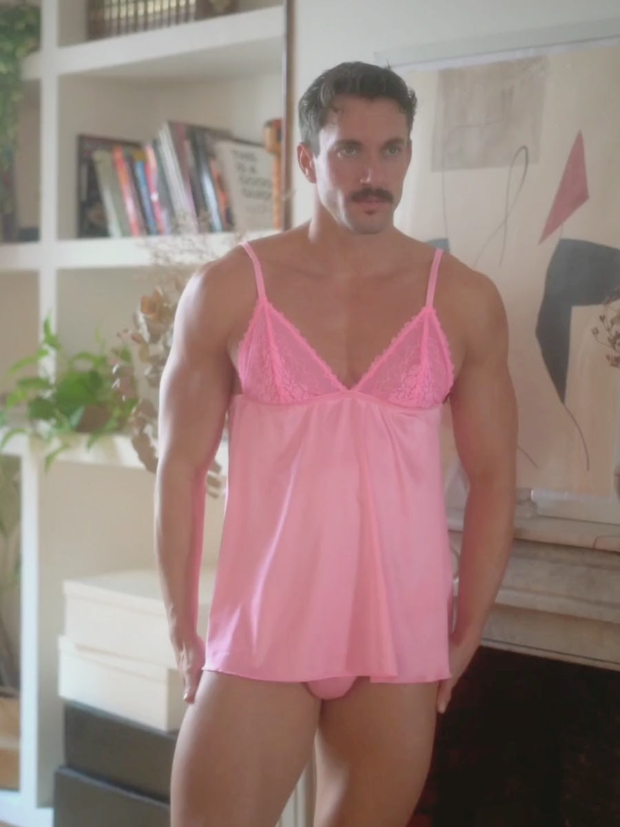 Treat yourself to something special with this exquisitely crafted pink bra. Designed specifically for men, yet unapologetically feminine in spirit. It features semi sheer seamed lace cups with a supportive wire beneath to beautifully shape and highlight your curves. Adjustable straps and a classic back clasp keep everything fitted and comfortable from the moment you slip it on.