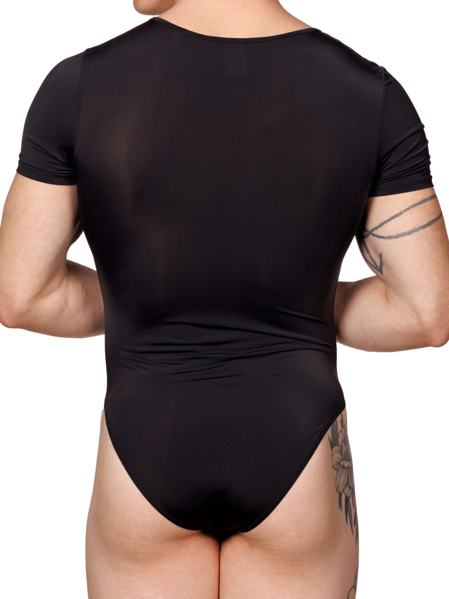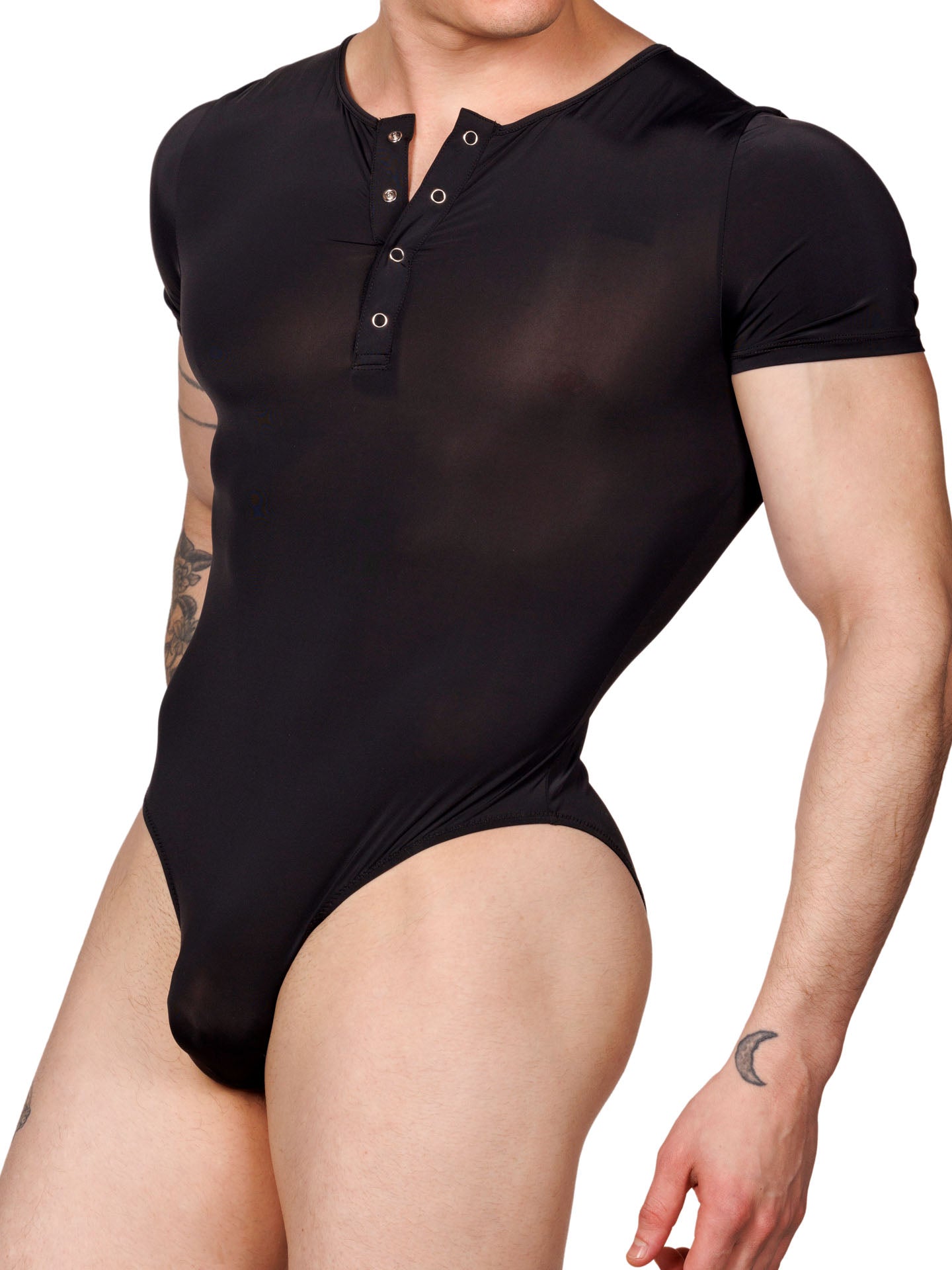 This irresistible short-sleeve bodysuit blends classic charm with a dash of playfulness. The henley style neckline, complete with four functional snaps, lets you decide just how much to reveal. Made from a lightweight & stretchy black fabric, this piece hugs your curves in all the right ways while keeping you comfy all day. The brief-style back offers a flattering fit, and the convenient two-snap closure at the bottom makes slipping in and out a breeze.